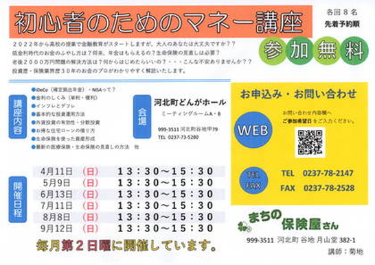 誠に勝手ながら、まちにゅーす(冬号)に掲載しておりました1月18日(土)のマネー講座は中止とさせていただきます